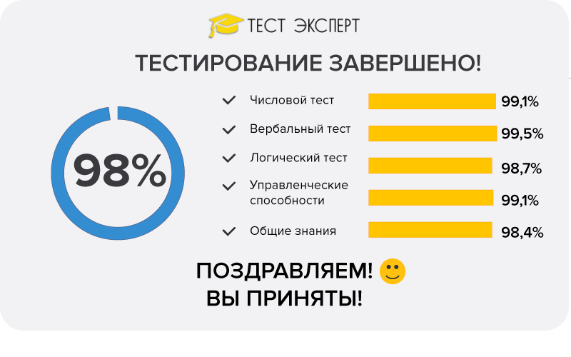 Наша гордость – это 98,4% тестов с высокими баллами.